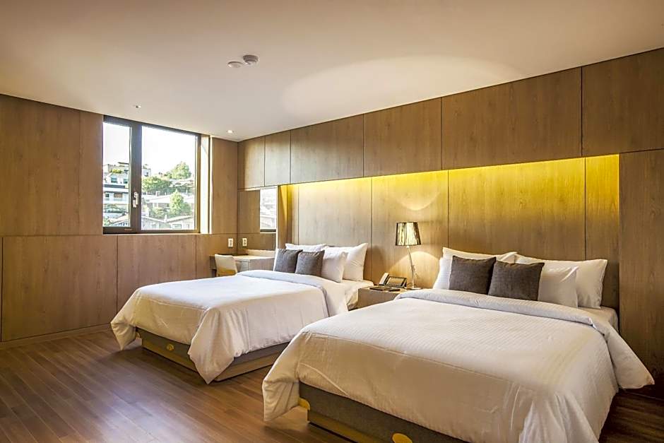 The suite has a spacious living room with a sofa, a coffee table and a work desk. There also are a mini-bar, a flat-screen TV and an electric kettle. Private bathroom is fitted with both a bath and a shower.